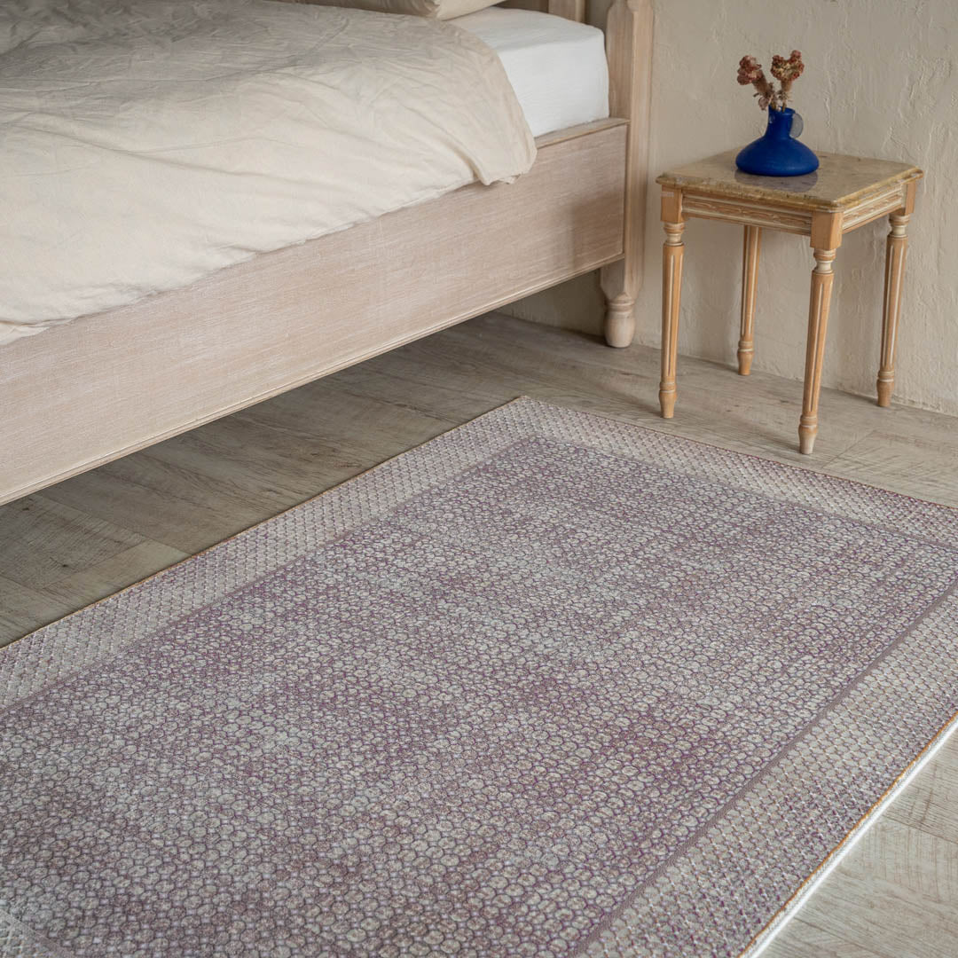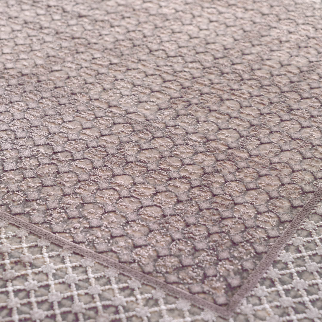 「マルマル」とはペルシャ語で「大理石」を意味します。この絨毯のデザインはシンプルながらも、ヴィンテージ調の独特な美しい色ムラが表現されており、お部屋に合わせやすく飽きの来ない総柄デザインです。特殊な技術により模様が浮き上がり、立体感を演出しています。光の当たり方によって淡いラベンダー色にも見える穏やかなグレーの色合いが、お部屋を優しく上品に引き立たせます。