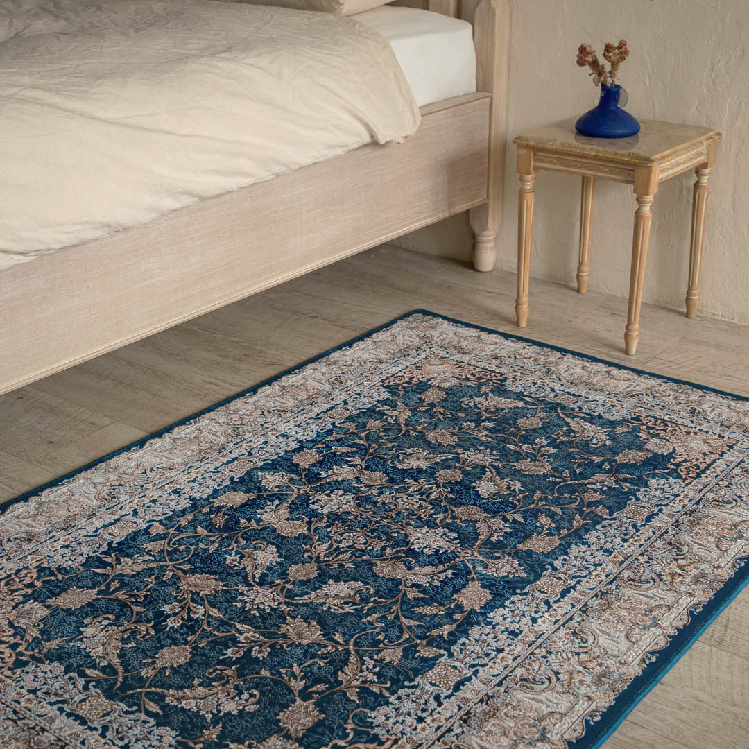 「ミトラ」とは現在のイラン(ペルシャ)の古代の神様を意味します。この絨毯のデザインは、中心部分から繊細に広がる蔦模様が特徴的で、お部屋に馴染みやすく気品あふれるエレガントさが魅力です。特殊な技術により、花の模様が浮き上がり、立体感を演出しています。ペルシャ絨毯らしいクラシックデザインを際立たせ、お部屋を華やかで上品に彩ります。