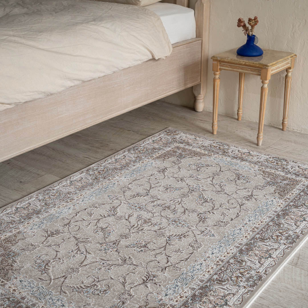 「ミトラ」とは現在のイラン(ペルシャ)の古代の神様を意味します。この絨毯のデザインは、中心部分から繊細に広がる蔦模様が特徴的で、お部屋に馴染みやすく気品あふれるエレガントさが魅力です。特殊な技術により、花の模様が浮き上がり、立体感を演出しています。ペルシャ絨毯らしいクラシックデザインを際立たせ、お部屋を華やかで上品に彩ります。