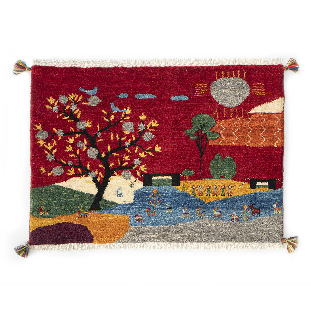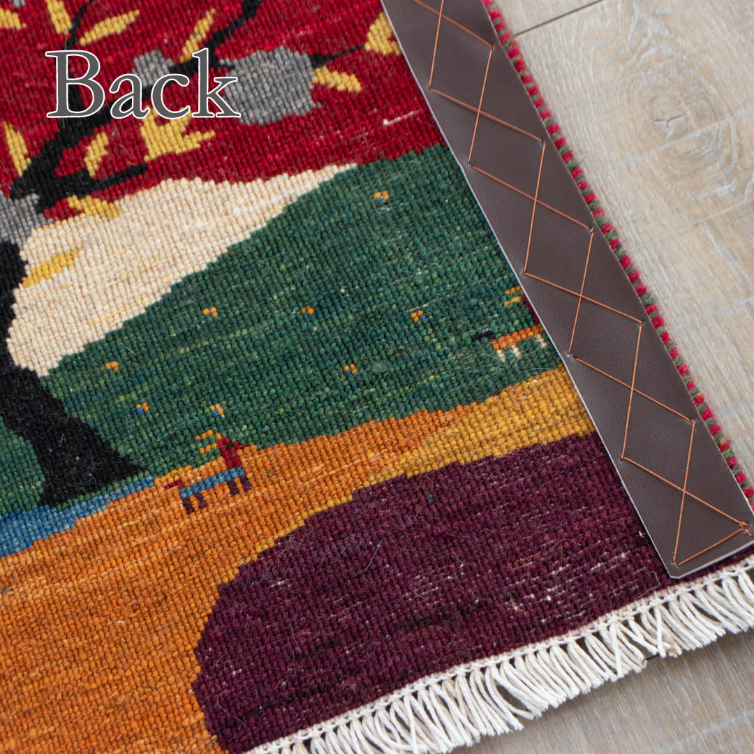 こちらのギャッベは細い糸で織られており、織るのに手間がかかる分、通常のギャッベより厚みが少なく織り目が詰んでいるリーズバフトギャッベです。